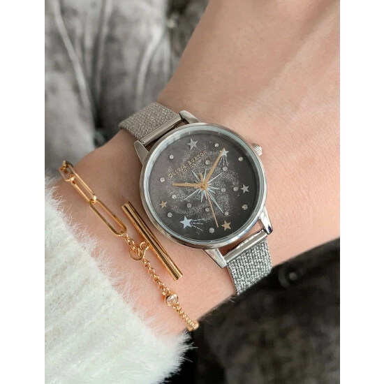 Olivia Burton Starburst Celestial Stainless Steel Bracelet Watch Women Silver