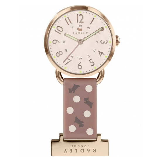 Radley Dog Print Nurses Fob Leather Watch Women Pink Mix