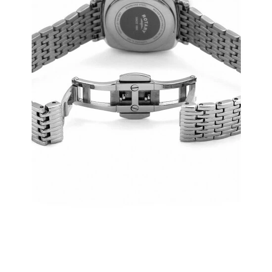 An elegant bracelet-style strap gives a classic look to this Rotary watch. It features a shimmering mother-of-pearl face, detailed with silver arms and subtle hour markers. A discreet date window completes this beautifully crafted piece. The watch is water-resistant 50 metres, giving you extra protection on weekend adventures.